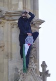 LONDON (AP) — A man was arrested early Sunday after he climbed the Big Ben tower at the Palace of Westminster in central London while barefoot and holding a Palestinian flag.