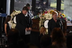 At the public viewing, visitors passed poster boards with quotes by Rosalynn Carter and walked through the museum before being allowed to pay their respects in small groups in front of her casket, which was in the lobby, flanked by members of the Georgia State Patrol Honor Guard.