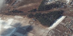 In another potentially ominous movement, new satellite photos appeared to show the massive Russian convoy outside the Ukrainian capital had fanned out into nearby towns and forests.