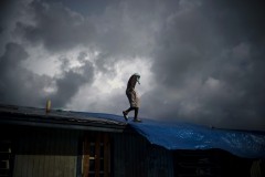 Under a bright sun in the Grand Bahama, 40-year-old maintenance man Dexter Wilson was helping a friend put a blue tarp on a damaged roof. He said he was worried about his brother in Abaco given the tropical storm.
