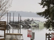 It's been a challenge for rescuers to reach the victims, Harnen said: "The damage from the dock has fallen on top of the boats, and some of the boats have drifted off," he said. The aluminum roof and wood structure was destroyed, as were about three dozen boats. Crews also were using booms in an attempt to contain fuel in the water, he said.
