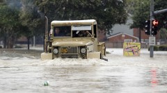 The strategic engineering move began early Monday. Harvey, which made landfall late Friday as a Category 4 hurricane and has lingered dropping heavy rain as a tropical storm, sent devastating floods pouring into Houston Sunday as rising water chased thousands of people to rooftops or higher ground and overwhelmed rescuers who could not keep up with the constant calls for help.