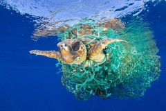The eclectic selection of winners highlighted the dominant news topics of the last year — including conflict in Syria and Iraq, the migrant crisis, the death of longtime Cuban leader Fidel Castro and the Olympic Games in Rio. Among winning nature photos were images depicting humanity's devastating effect on wildlife, including a gruesome photograph of a poached rhino with its horn hacked off and another showing a turtle swimming while enmeshed in a green fishing net.