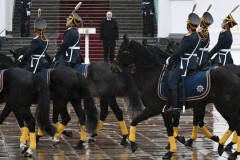 His guard of honor waited in the sleet and rain for hours, in temperatures hovering just above freezing, while Putin made the brief journey to the Grand Kremlin Palace in his Auras limousine.