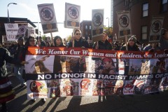 MINNEAPOLIS (AP) — Hundreds of protesters chanting "We are not your mascot" have marched in Minneapolis against the Washington Redskins team name.