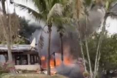Video obtained from a witness by The Associated Press and verified shows at least two bodies strewn about flaming pieces of wreckage.