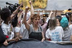 Protesters loudly chanted "What do we want? Free families" and "This is what democracy looks like."