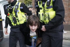 Several police officers could be seen grappling with a man at a crowd barrier. Britain's PA news agency reported that he shouted “this country was built on the blood of slaves” as he was being detained.