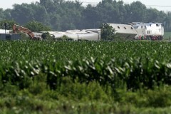 The collision derailed seven cars, according to the Missouri State Highway Patrol. The truck was broken into pieces. National Transportation Safety Board investigators were at the scene Tuesday, trying to determine how the accident happened and why the truck was on the tracks. The damaged tracks had been repaired and freight trains were operating.
