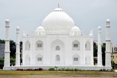 Constructed with white marble from the same city in Rajasthan state that provided the Taj Mahal's stone, the imitation includes the real monument's large dome, intricate minarets and even some of its artwork.