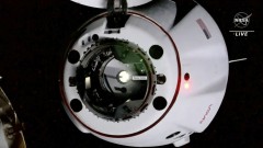 The SpaceX capsule pulled up to the station a day after launching into orbit. The linkup occurred 260 miles (420 kilometers) above the Atlantic, just off the west coast of Africa.