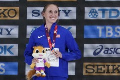 American runner Shelby Houlihan returned to the big stage after a much-debated four-year doping ban and won a silver medal in the 3,000 meters at the world indoor championships.
