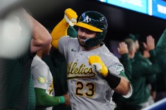 Langeliers, who homered twice in Friday’s season-opening loss, went 2 for 4 with a walk.
