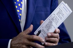 In March, early in the coronavirus pandemic, President Donald Trump's notes were photographed to show “Chinese” written over “corona,” part of the president's efforts to blame the pandemic on a foreign adversary. Last year, as Trump faced impeachment for pressuring Ukraine officials to help his reelection by finding dirt on Biden, the president had notes that read: “I want nothing” and “I want no quid pro quo.”