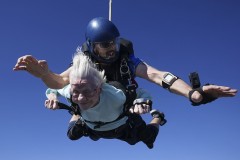 Hoffner first skydived when she was 100. On Sunday, she left her walker behind just short of the plane — a Skyvan — and was helped up the steps to join the others waiting inside to skydive.