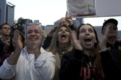 Relatives and friends of people killed and abducted by Hamas and taken into Gaza, react as they gather in Tel Aviv, Israel on Sunday, Jan. 19, 2025. (AP Photo/Maya Alleruzzo)   (Associated Press)