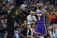 James made the gesture after making a shot late in Los Angeles' 124-116 overtime victory in Indiana on Wednesday night.