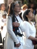 An attendant checked each weapon at the door to make sure it was unloaded and secured with a zip tie, and the elaborate commitment ceremony went off without a hitch. Some worshippers wore crowns made out of bullets.