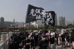 "Today we are out to tell the Communist Party that Hong Kong people have nothing to celebrate," said activist Lee Cheuk-yan as he led the downtown march. "We are mourning that in 70 years of Communist Party rule, the democratic rights of people in Hong Kong and China are being denied. We will continue to fight."