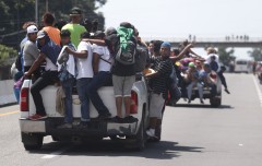 Migrants received help Sunday from sympathetic Mexicans who offered food, water and clothing. Hundreds of locals driving pickups, vans and cargo trucks stopped to let them clamber aboard.