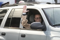 Lansdowne Officer David Schiazza, 54, who was wounded in the leg, was discharged Thursday afternoon, rolled out of the hospital in a wheelchair and greeted by rows of fellow officers who stood at attention and saluted. He waved and flashed a thumbs-up sign through the passenger-side window as he was driven away.