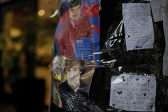 Several girls with tear-stained cheeks paused to sit in trance-like silence before a makeshift memorial of candles and colorful flowers spilling prolifically onto the cordoned-off street outside the hotel. Some fans taped up portraits of Payne and handwritten notes with sorrowful slogans like “Always in my heart" on a tree trunk.