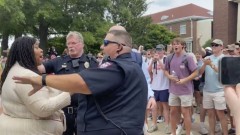 Student journalist Stacey J. Spiehler shot video that showed campus police officers and the dean of students standing between anti-war protesters and hecklers. After the Black woman protesting the war had what appeared to be a heated exchange of words with several white hecklers, one of the men made the monkey gestures and noises at her.