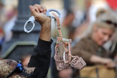 Saturday's protest in Trafalgar Square, which was themed “Resist and Act for Freedom,” ended in clashes between demonstrators and London police, as officers tried to disperse hundreds of people holding banners and placards scrawled with anti-restriction messages such as “This is now Tyranny.”