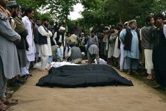 Videos posted on social media showed dozens of people gathered Saturday behind the hospital in Baghlan looking for their loved ones. An official tells them that they should start digging graves while their staff are busy preparing bodies for burial.