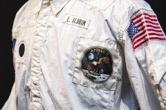 The jacket displays Aldrin’s name tag on the left breast above the Apollo 11 mission emblem, and the American flag on the left shoulder. It is made of a fire-resistant material known as Beta cloth that was incorporated in spacesuits in response to the fire that killed three astronauts aboard Apollo 1 in 1967, according to Sotheby's.