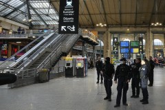 Video of the Gare du Nord, one of the French capital’s busiest commuter stations, showed an eerie calms as dozens of police huddled nearby the Eurostar terminal entrance in areas cordoned off from the public.