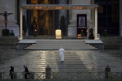 The prayer service was one of several scheduled over the next few weeks that will see the 83-year-old pontiff virtually solo in the square or celebrating Masses for Holy Week and Easter Sunday in the shelter of St. Peter's Basilica instead of outdoors in the company of tens of thousands of faithful.