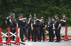 “This is just a totally surreal experience, the amount of police presence is phenomenal. It’s got to be the safest place in the country to be at the moment,” said Sue Bates, 64, who was relaxing on the beach Wednesday. Her husband, John, said they felt their holiday cottage shake when helicopters flew over.