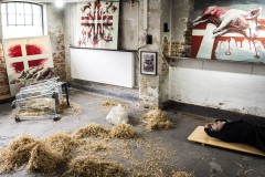 Evaristti's “And Now You Care” exhibition involved a makeshift cage created with shopping carts containing the three piglets. He said the intention of the art installation was to raise awareness about the cruelties of modern pig production in Denmark.