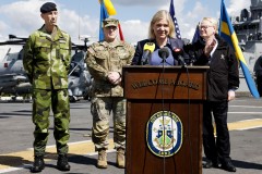 “It is important for us, the United States, and the other NATO countries to show solidarity with both Finland and Sweden in this exercise,” U.S. Gen. Mark Milley, Chairman of the Joint Chiefs of Staff, said Saturday during a news conference aboard the large amphibious warship USS Kearsarge, which was moored in central Stockholm.