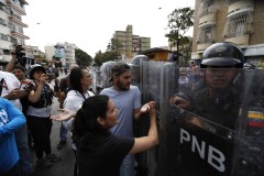 Opposition demonstrators earlier in the morning pushed against the shields of riot police, who withdrew from the area but maintained a large presence. Some protesters elsewhere in the city said lines of police were blocking them from reaching the rally organized by opposition leader Juan Guaido, creating a sense of confusion as power and communications outages plagued the country.