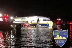 A Boeing 737 arriving at Naval Air Station Jacksonville from Naval Station Guantanamo Bay, Cuba, with 136 passengers and seven aircrew slid off the runway into the St. Johns River, a NAS Jacksonville news release said.