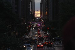 WHERE CAN YOU SEE MANHATTANHENGE?The traditional viewing spots are along the city's broad east-west thoroughfares: 14th Street, 23rd Street, 34th Street, 42nd Street and 57th Street. The farther east you go, the more dramatic the vista as the sun's rays hit building facades on either side. It is also possible to see Manhattanhenge across the East River in the Long Island City section of Queens.