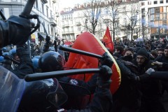 In Milan, far-left demonstrators clashed with police trying to block them from reaching a far-right rally. Police in riot gear wielded batons against the front line of protesters to drive them back.
