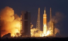 The company handled the $370 million test flight for NASA from the Cape Canaveral Air Force Station, opting for the Delta IV rocket this time given its heft. It's the most powerful unmanned rocket in the U.S. right now. The entire rocket and capsule, topped by a launch abort tower, stretched 242 feet and weighed 1.6 million pounds — an "incredible monster," according to Bolden.