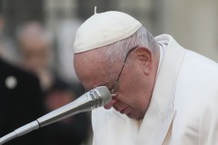 Francis leaned over and choked up, unable to speak precisely as he arrived at the part of the prayer where he said: “I would have liked to have brought you the thanks of the Ukrainian people …”