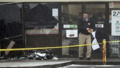 Police said the driver hit all eight members of the family and smashed into the storefront before he reversed the vehicle and drove forward again, striking the family a second time.