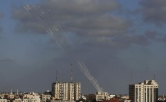 Since the fighting began, the Israeli military has launched hundreds of airstrikes it says are targeting Hamas’ militant infrastructure. Palestinian militants in Gaza have fired more than 3,200 rockets into Israel. Israeli military officials said Hamas had stockpiled about 15,000 rockets before the war started. Rocket attacks continued Monday, with one hitting a building in the city of Ashdod that caused injuries, the Israeli police said.