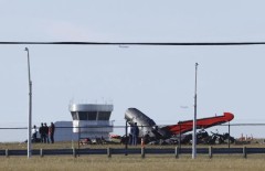 Emergency crews raced to the crash scene at the Dallas Executive Airport, about 10 miles (16 kilometers) from the city’s downtown. Live TV news footage from the scene showed people setting up orange cones around the crumpled wreckage of the bomber, which was in a grassy area.
