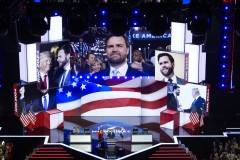 Trump, accompanied by a wall of Secret Service agents, did not address the hall — with his acceptance speech scheduled for Thursday — but smiled silently and occasionally waved as Greenwood sang. He eventually joined his newly announced running mate, Ohio Sen. JD Vance, to listen to the night’s remaining speeches, often with a subdued expression and muted reactions uncharacteristic for the unabashed showman.