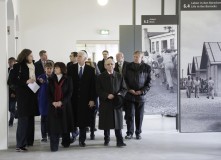 The vice president was accompanied by Abba Naor, a survivor of the camp, and other dignitaries as he passed through the wrought iron gate bearing the inscription, "Arbeit macht frei," or "Work sets you free." The Pences placed a wreath beneath the International Memorial at the center of the camp, toured the barracks and viewed the ovens inside the crematorium.