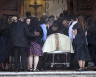 Family members wiped away tears and clung to each other in emotional embraces throughout the service, especially during the singing of “Amazing Grace” as the caskets were being carried out of the church at the end.
