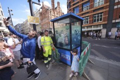 A small crowd of people flocked to the fish tank-themed artwork Monday, taking photos and selfies as workmen placed barriers around it. A spokesman for the City of London Corporation said it was looking at options to preserve it.