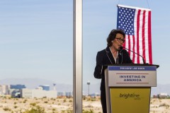 Brightline West says electric-powered trains will cut the four-hour trip across the Mojave Desert to a little more than two hours. It projects 11 million one-way passengers per year, with fares that Edens said will be comparable to airline ticket costs. The trains will offer rest rooms, Wi-Fi, food and beverage sales and the option to check luggage.