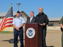 Homeland Security Secretary Jeh Johnson visited the 50-acre compound featuring 80 tan, two-bedroom, one-bathroom cottages connected by dirt roads and newly laid grass sod in Dilley, about 70 miles southwest of San Antonio.